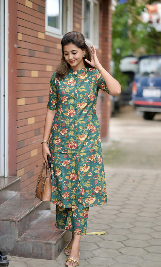 "Cotton Top with Pant in Digital Print and Mirror Work"