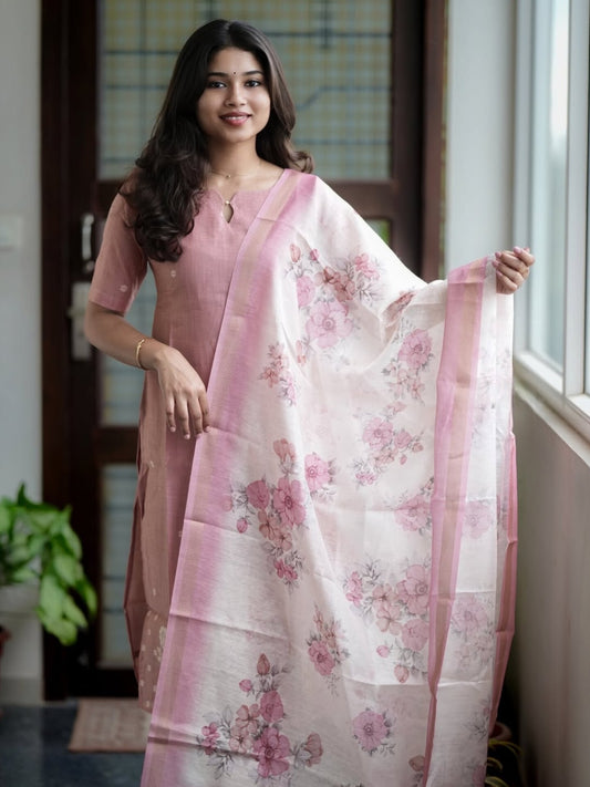 OFFPremium Blush Floral Kurti Set 🌸
