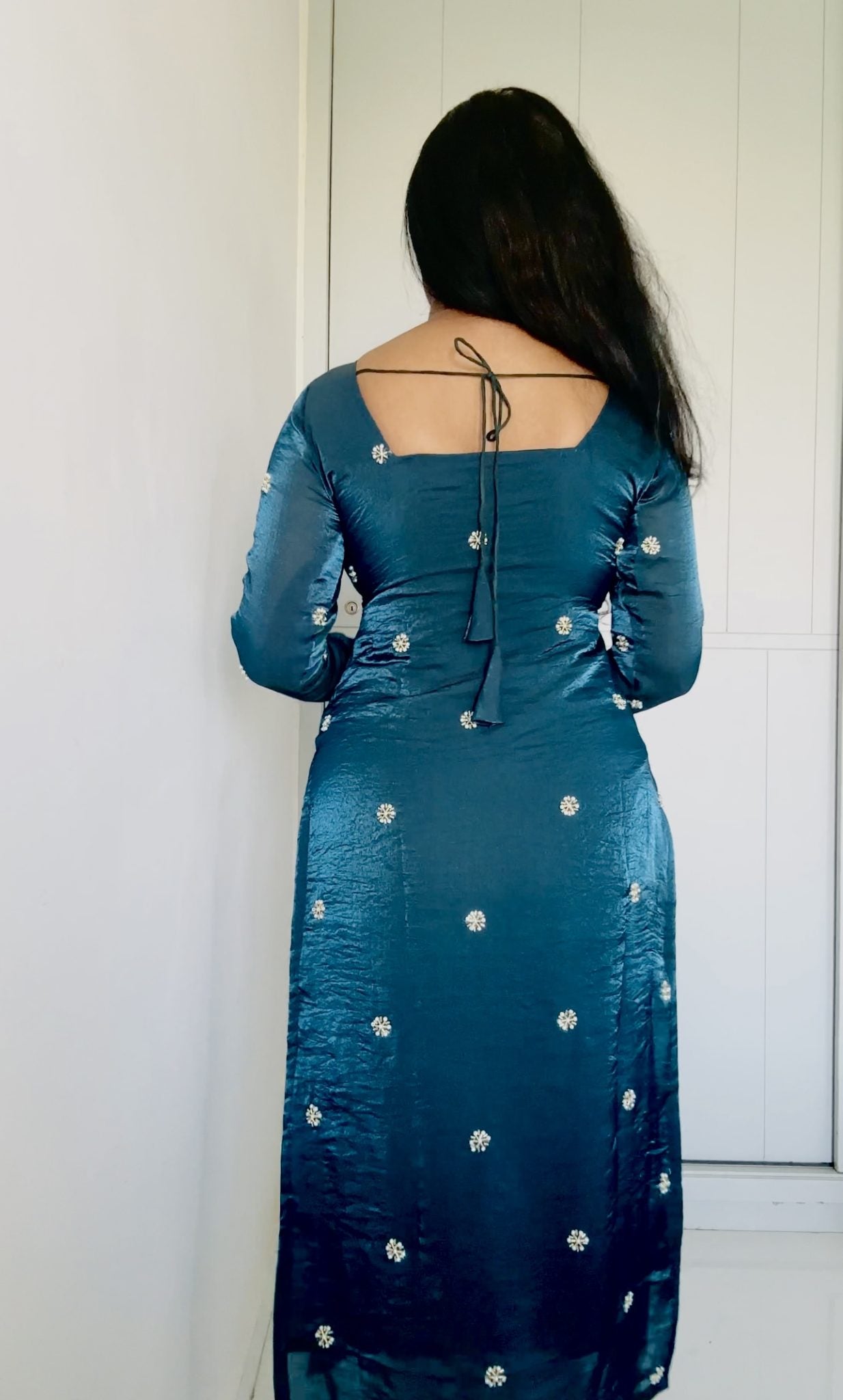 "This flared kurti is just beautiful! The flowy design adds an elegant touch, and the fabric is so comfortable. Perfect for both casual and festive occasions!"